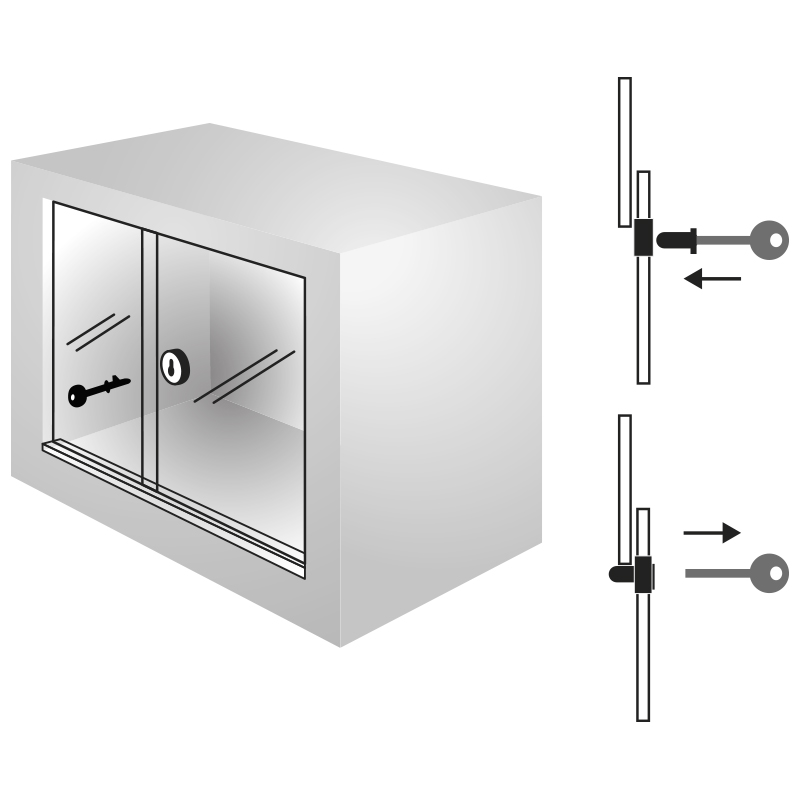 Accessori per serrature a spillo per porte scorrevoli. Toppe in ABS oppure Zama per serrature a spillo, utilizzabili nelle porte scorrevoli. Modello: KT160B Foro su vetro: Ø 16 mm Spessore vetro: ..