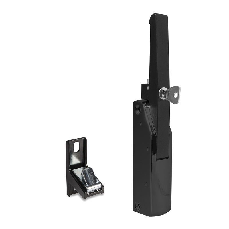 Chiusura in alluminio a scatto per sportello banco bar con chiave.