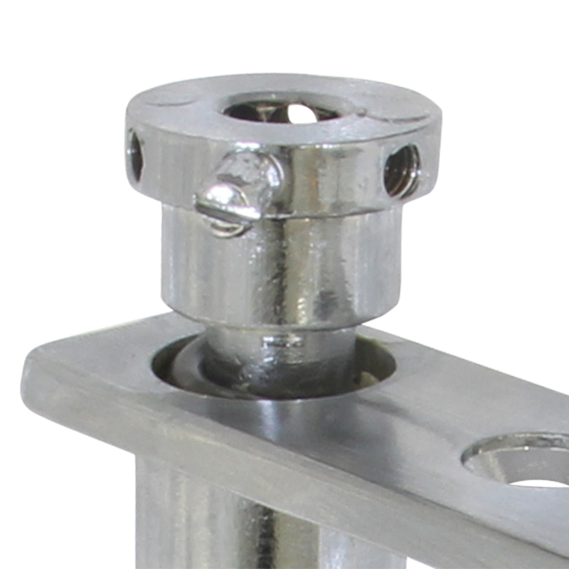 Cerniera pivot a molla di torsione regolabile per ritorno porta verticale con testa a 6 fori e perno di fermo.
