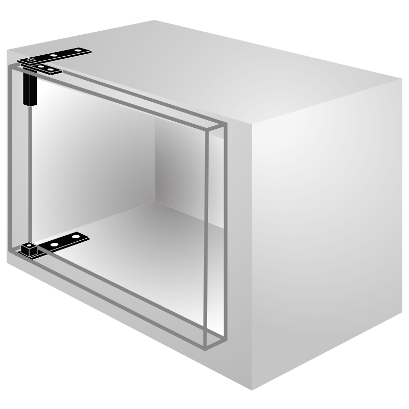 Kit cerniera per porte destre o sinistre. Basetta con 2 fori di fissaggio.
